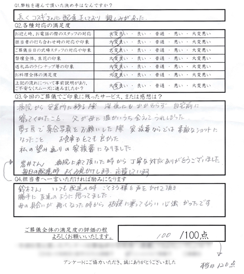 Q.今回のご葬儀でご印象に残ったサービス、または感想は?