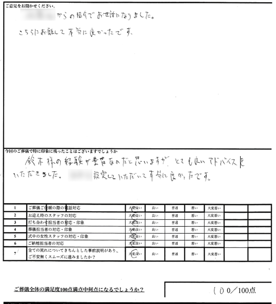 ご近所の方にご紹介頂きお葬式のお手伝いさせて頂きました。