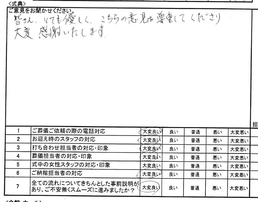 皆さんとても優しく、こちらの意見を尊重してくださり大変感謝いたします。